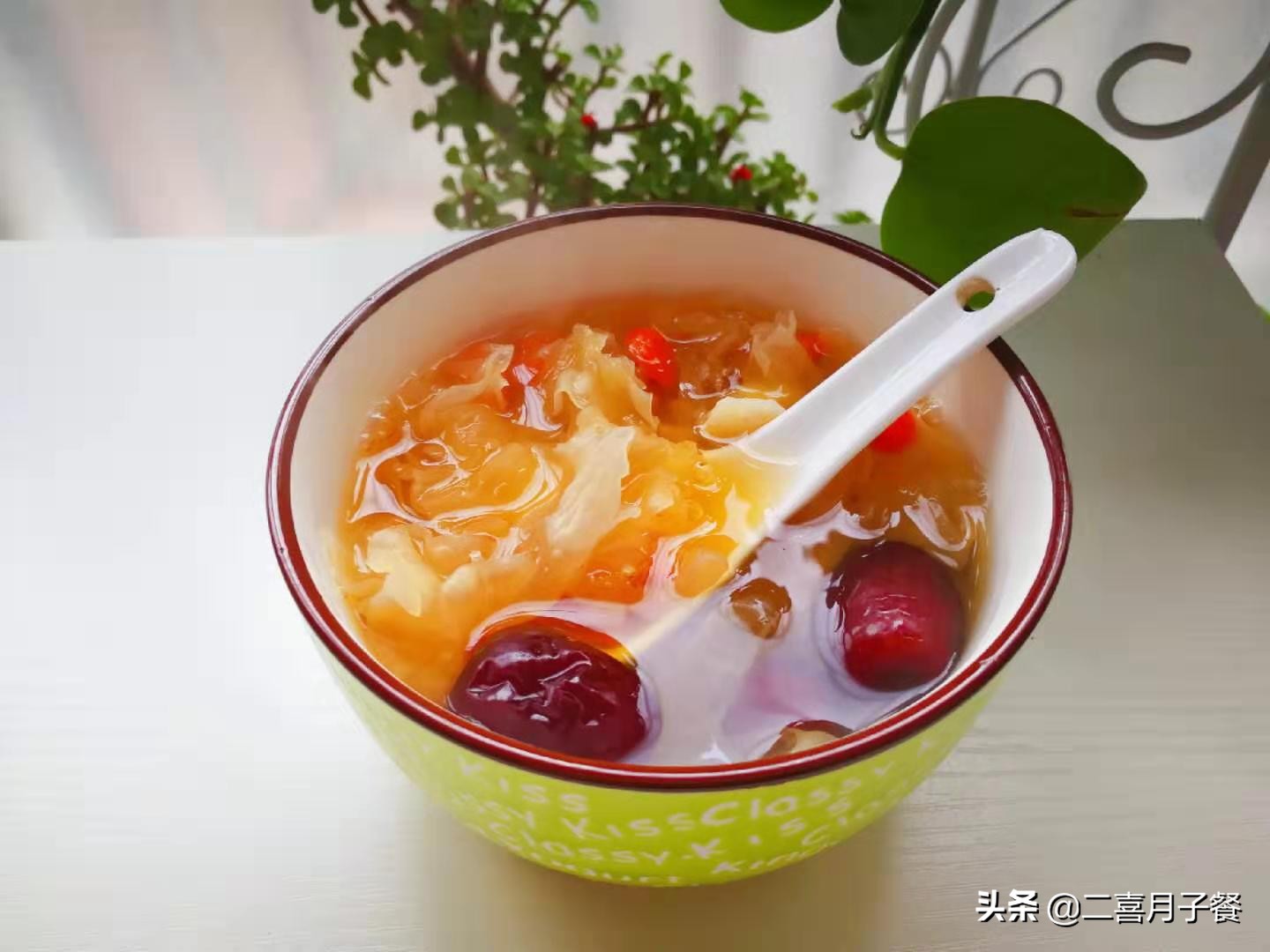 食材:干银耳15克、百合干10克、红枣5颗、枸杞一把